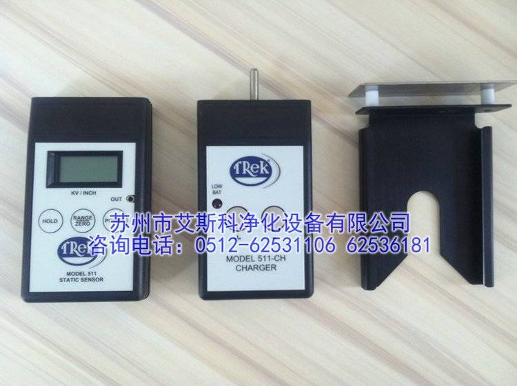 产品展示:主机搭配充电板和充电枪可测试离子风机平衡电压:A.产品介绍:手持式静电场强计TREK-511是一款手持式的、截波稳定、非接触式的静电场强计。设计用途是在静电敏感区测试和稽核静电电压,以至于使用者可以在静电产生问题之前发现它。TREK-511的特点有:通过LED指示灯的开关,可选测量范围有±2KV或者±20KV,增加仪